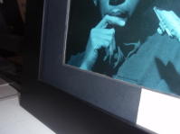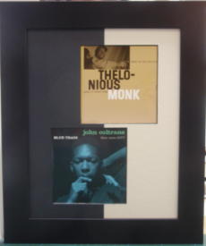 ・CDの歌詞カードを額装しました。黒と白のマットを半分ずつ使用し窓抜きを施しました。、モダンな仕上がりです。 |