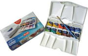 発色の鮮やかな固形水彩絵具です。コンパクトな多色セットは、野外でのスケッチに便利です。